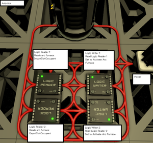 - Logic Writer 1 will read "Slot Reader 1", have it write to the Arc Furnace, and have it Activate.