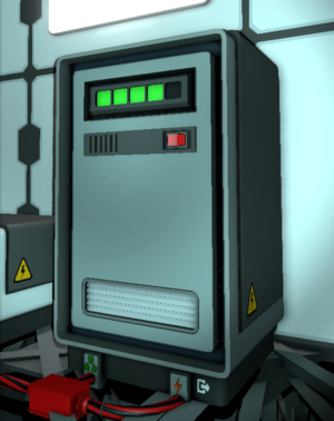 The Kit (Battery Large) is used to create stationary battery cells, which can provide big and stable energy storage or energy buffer for your power needs. Its energy storage is 9000001 J or 2.5 kWh. Any battery loses stored power, if is in a cold atmosphere.