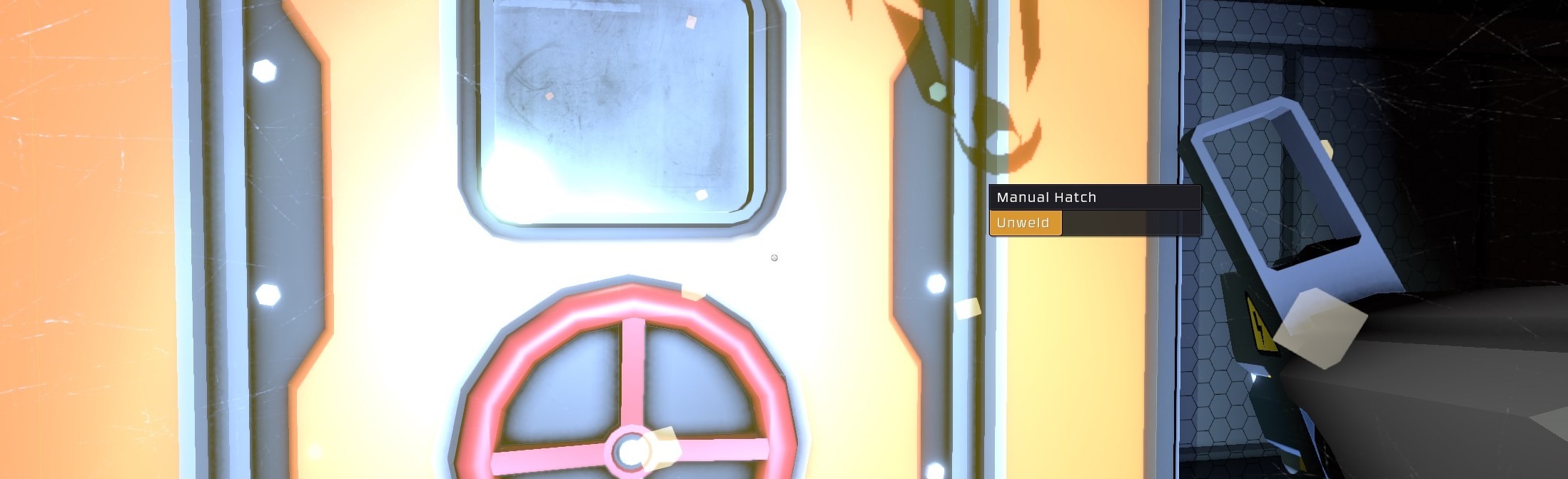- Added ability to weld and unweld a Manual Hatch. This is done using a Welder. Welding a hatch will take some time and fuel/power, but will lock the door in place (open or closed). This is useful if you want an access hatch for maintenance access, but want to prevent regular use. Tooltips (localizable) have been added as well as the description changed for the hatch to indicate this functionality.