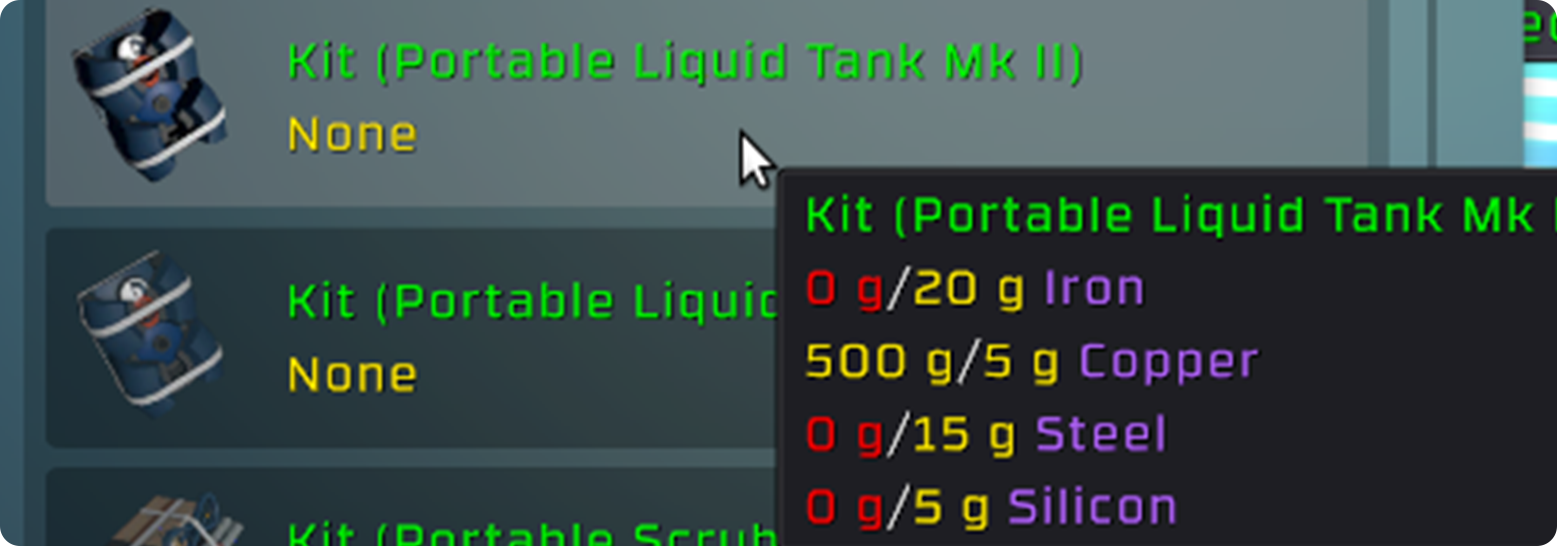 As a continued effort to increase the information we provide via tooltips items in the manufacturing machine now have their recipe included in their tooltips. This provides what is need and what is currently available in the manufacturing machine.