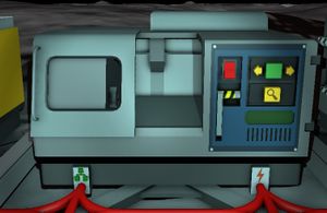 Used to craft variety of items. Takes ingots in the left and spits product out of the right. Power button toggles machine power state. Level will eject materials inside if machine is powered. Arrow keys select recipe and push button between arrows to craft.